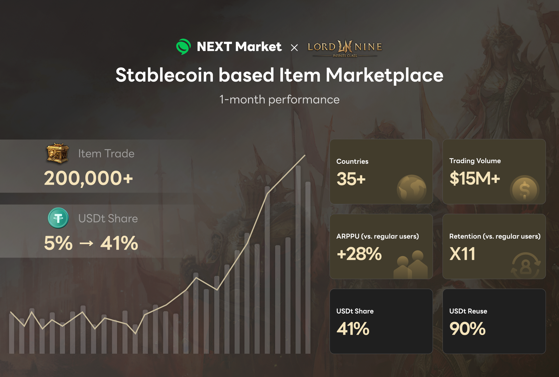 These benchmarks show that stablecoin payments are continuing to find popularity in regions like Japan, Thailand, and the Philippines, reinforcing LORDNINE’s popularity and establishing NEXT Market as a driving force for sustainable growth in the gaming industry.