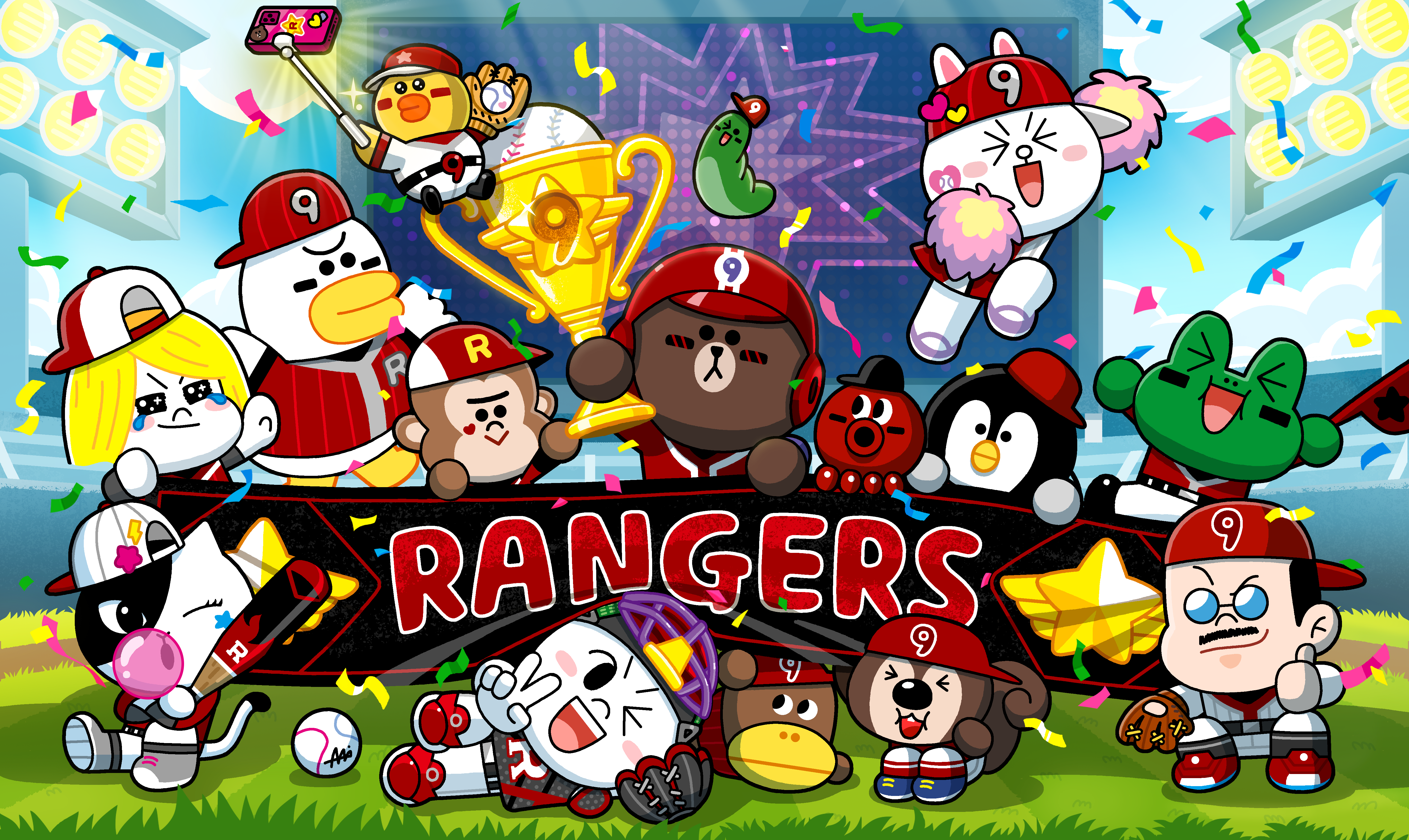 라인 레인저스는 이번 9주년을 맞이해 한정 기간 동안 ‘야구’ 테마의 신규 레인저 3종 및 타워 스킨을 출시하고, 9주년 스페셜 행성 스테이지를 오픈한다. 또, 유저들에게 한층 더 재미를 제공할 풍성한 보상 이벤트를 준비했다. 먼저 유저들은 로그인 시 하루 1개의 9주년 기념 레인저를 획득할 수 있고, 출석 이벤트나 특정 미션을 클리어하면 얻을 수 있는 ‘9주년 가챠 티켓’으로 최대 170개 이상의 무료 레인저를 획득할 수 있다. 이외에도 스페셜 미션이나 소셜미디어 캠페인 통해 아이템을 얻을 수 있는 풍성한 이벤트를 진행할 예정이다. 자세한 내용은 라인 레인저스 게임 내 공지사항에서 확인 가능하다.