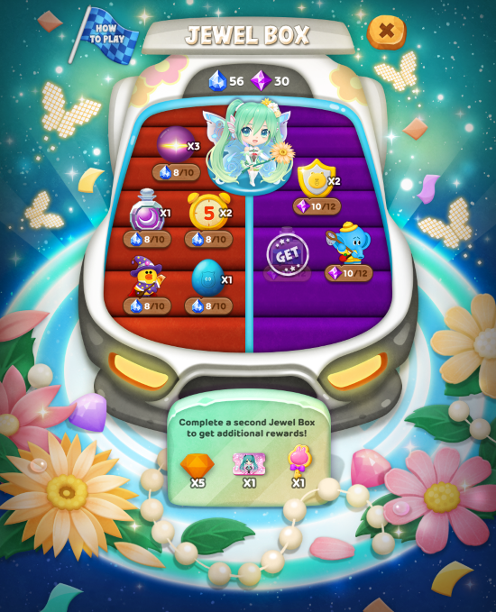 在活動期間內,只要通過一般關卡並蒐集到指定的寶石數量,就可以在寶石箱內獲得相對應的遊戲道具,蒐集到全部數量的寶石就可以獲得豐富的遊戲內道具獎勵!詳細的獲得條件,請參考遊戲內公告。