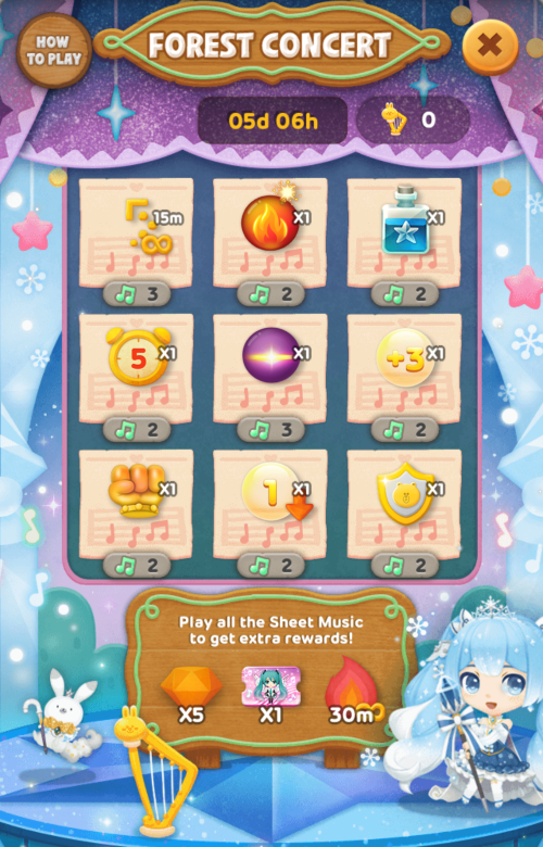 在活動期間內,只要通過一般關卡即可獲得樂器,使用獲得的樂器即可挑戰取得樂譜中的道具,成功挑戰後便可以獲得相對應的活動獎勵喔!